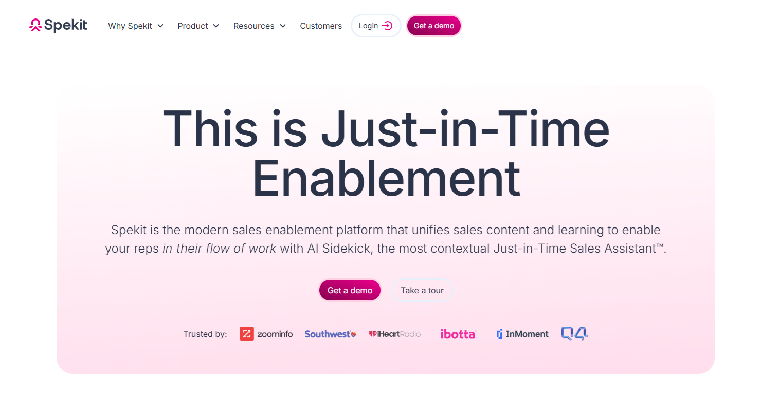 Pricing: Spekit offers custom pricing based on team size and feature requirements. Contact their team for a demo and tailored quote. Implementation typically takes 2 months with measurable ROI within 9 months.